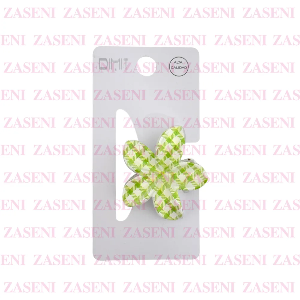 Pinza de tamaño mediano con bonita forma de flor y estampado de cuadros diseñada para recoger el cabello de manera fácil y cómoda consiguiendo un sutil y bonito recogido.