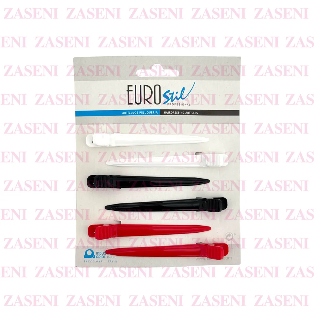 Pinzas curvadas finas de plástico de varios colores diseñadas para sujetar el cabello de manera cómoda y segura.