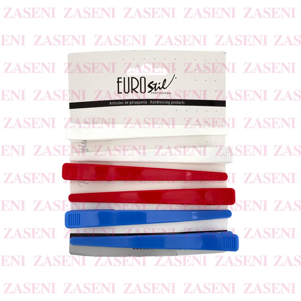 Pinzas curvadas largas de plástico de varios colores diseñadas para sujetar el cabello de manera cómoda y segura.
