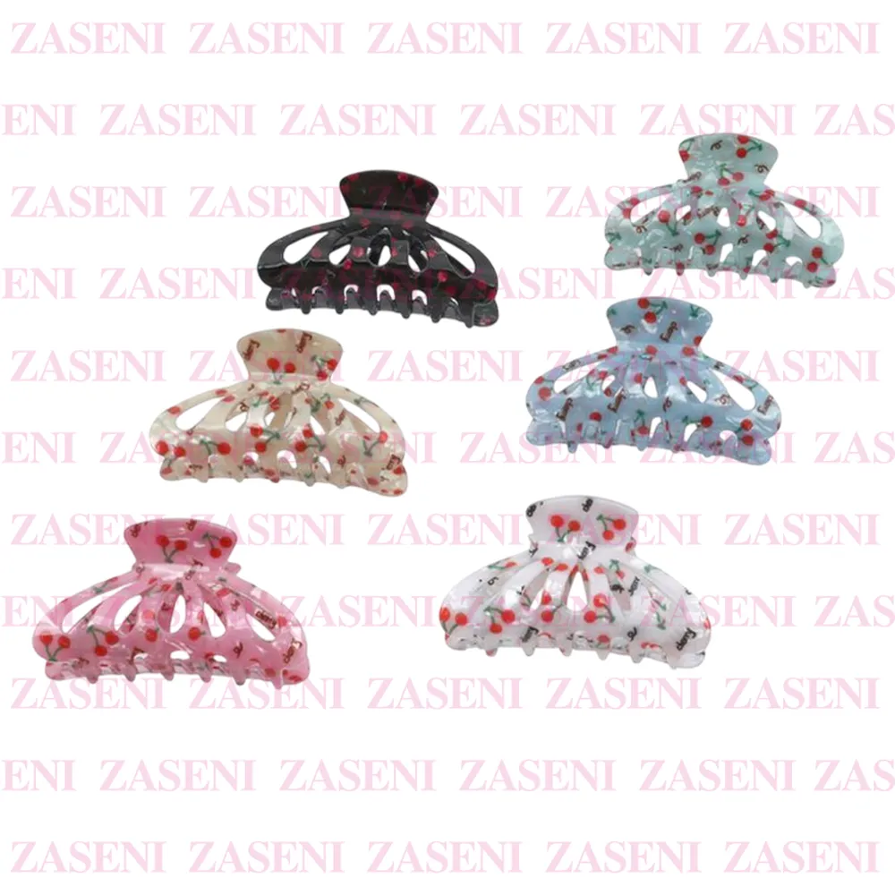 Pinza para el pelo de tamaño 9cm con bonito diseño de cerezas ideal para recoger el cabello de manera cómoda consiguiendo un bonito y práctico recogido.