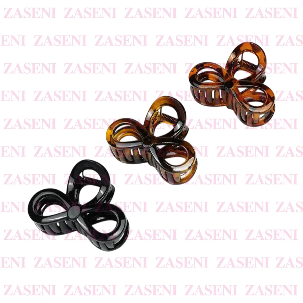Pinza para el pelo de tamaño 8cm en bonita forma de lazo con efecto carey diseñada para recoger el cabello de manera práctica consiguiendo un bonito, fino y cómodo recogido.