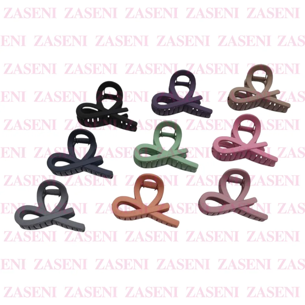 Pinza para el pelo de tamaño 8cm en bonita forma de lazo moderno con acabado mate diseñada para recoger el cabello de manera práctica consiguiendo un bonito, fino y cómodo recogido.