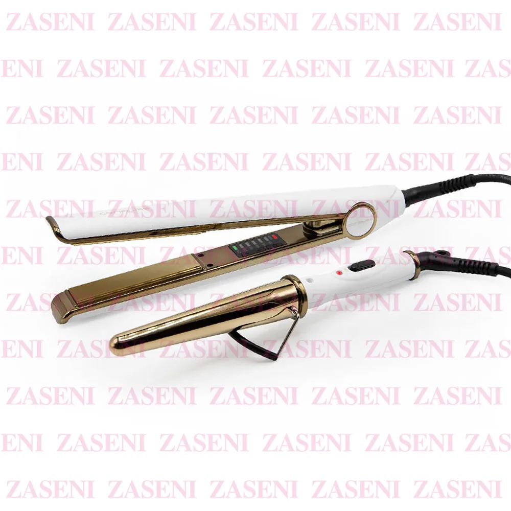 Kit compuesto por dos herramientas profesionales que hacen conectar con el peinado inteligente, la plancha de pelo C1 Digital y el mini cono Glamour Wand, en un increíble y bonito diseño White Gold.