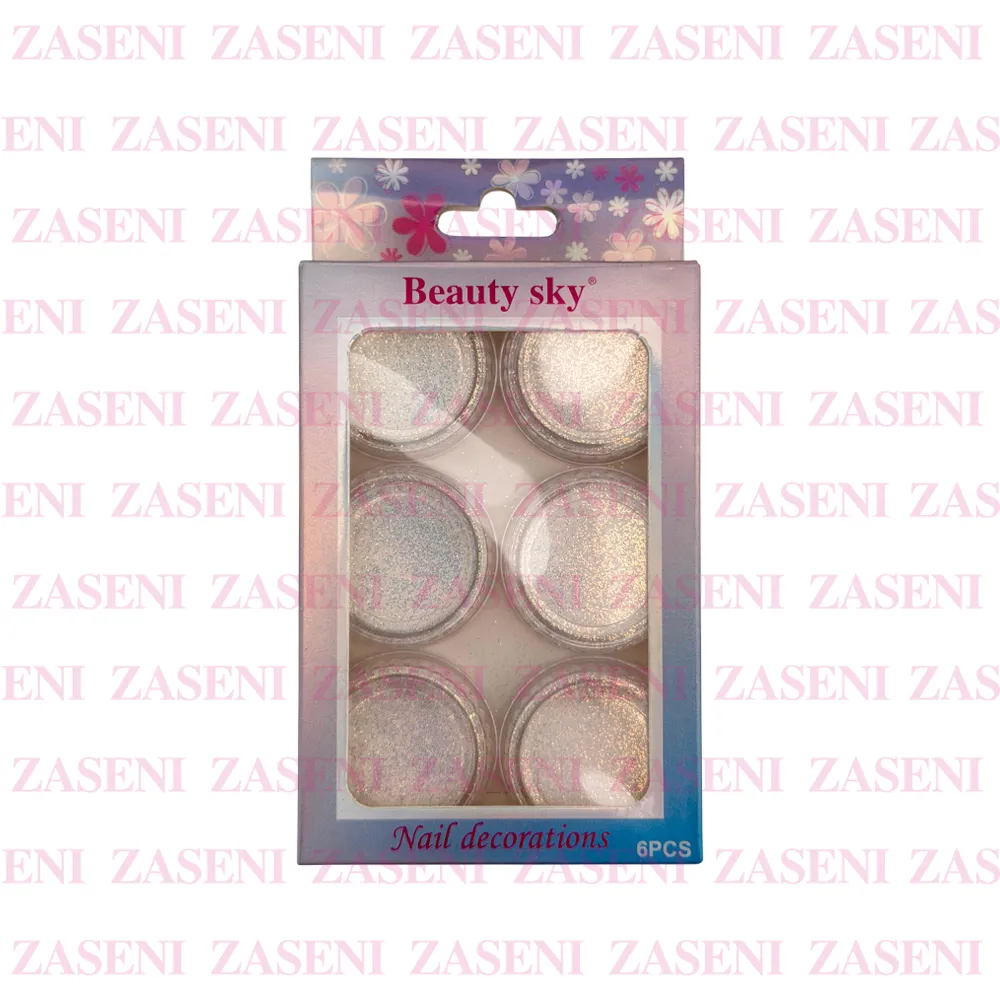 Set de decoraciones para uñas con 6 frascos de distintos estilos y colores ideales para crear diseños únicos y personalizados consiguiendo una manicura única y llamativa.