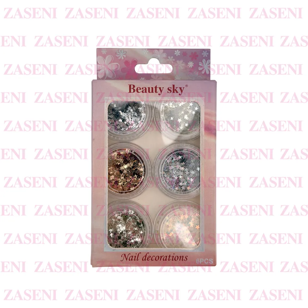 Set de decoraciones para uñas con 6 frascos de distintos estilos y colores ideales para crear diseños únicos y personalizados consiguiendo una manicura única y llamativa.