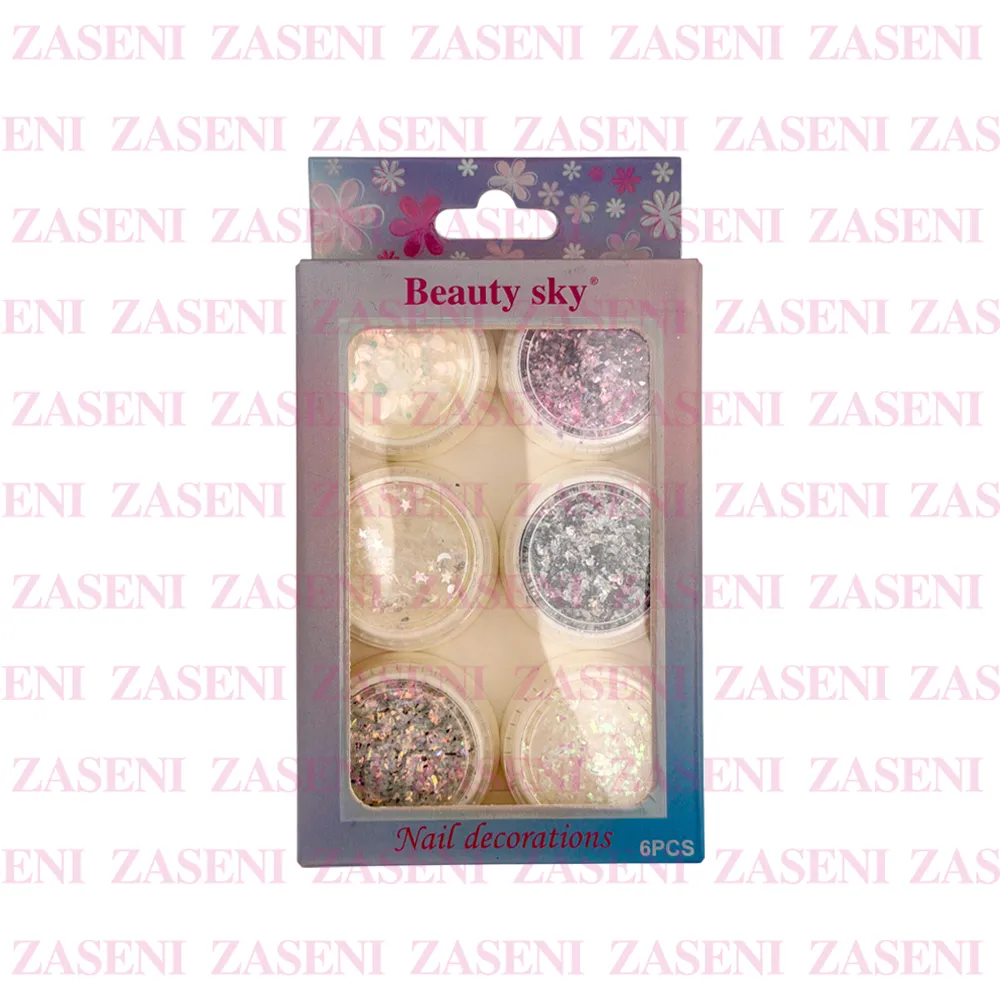 BEAUTYSKY PACK DECORACIÓN UÑAS TONOS BLANCOS Y PLATA