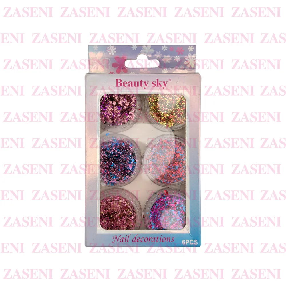 Set de decoraciones para uñas con 6 frascos de distintos estilos y colores ideales para crear diseños únicos y personalizados consiguiendo una manicura única y llamativa.
