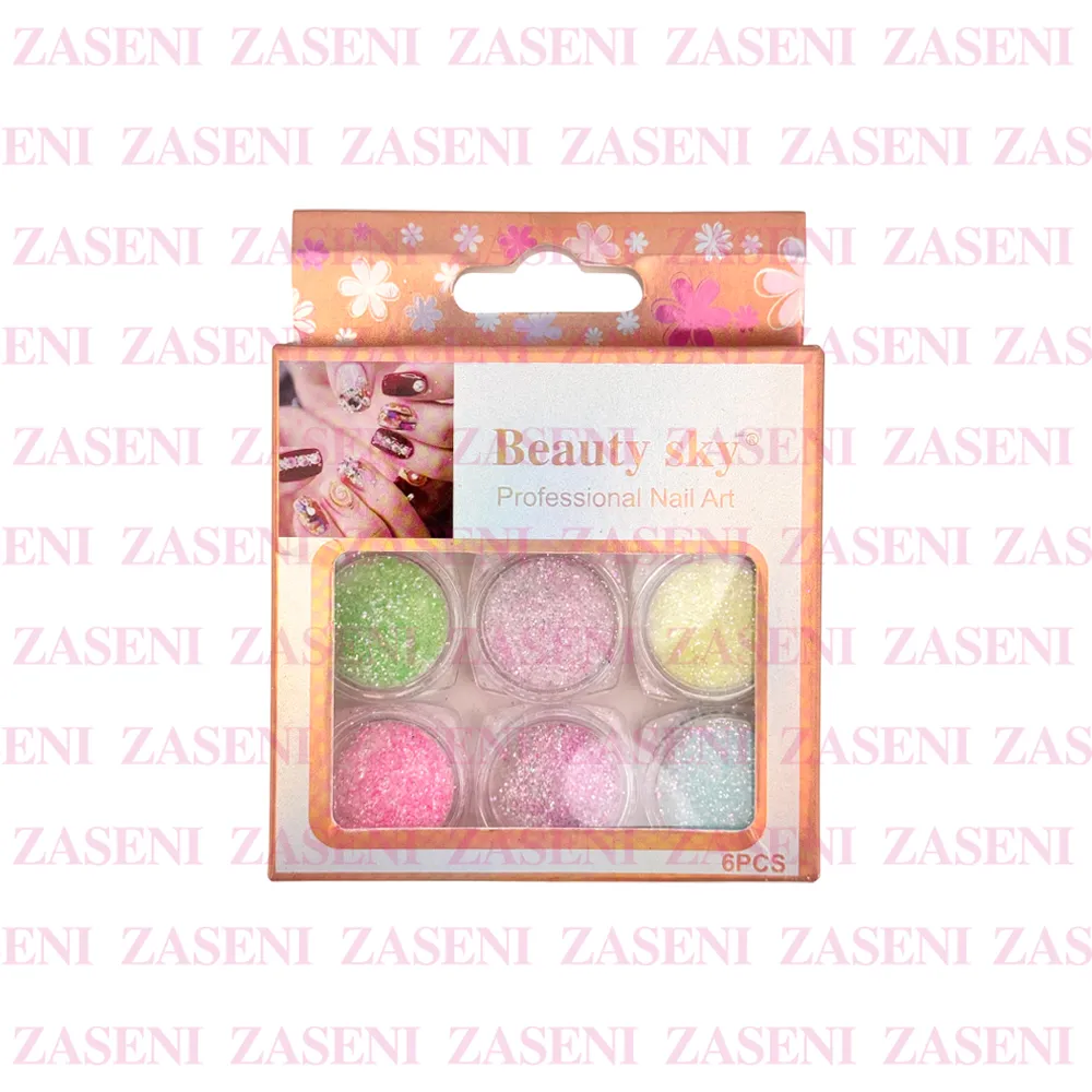 Set de decoración para uñas con 6 frascos de purpurina de distintos colores ideales para crear diseños únicos y personalizados consiguiendo una manicura única y llamativa.