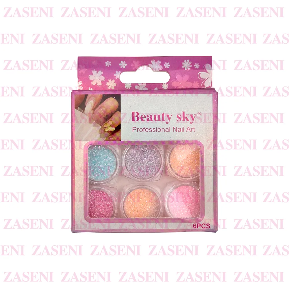 Set de decoración para uñas con 6 frascos de purpurina de distintos colores ideales para crear diseños únicos y personalizados consiguiendo una manicura única y llamativa.