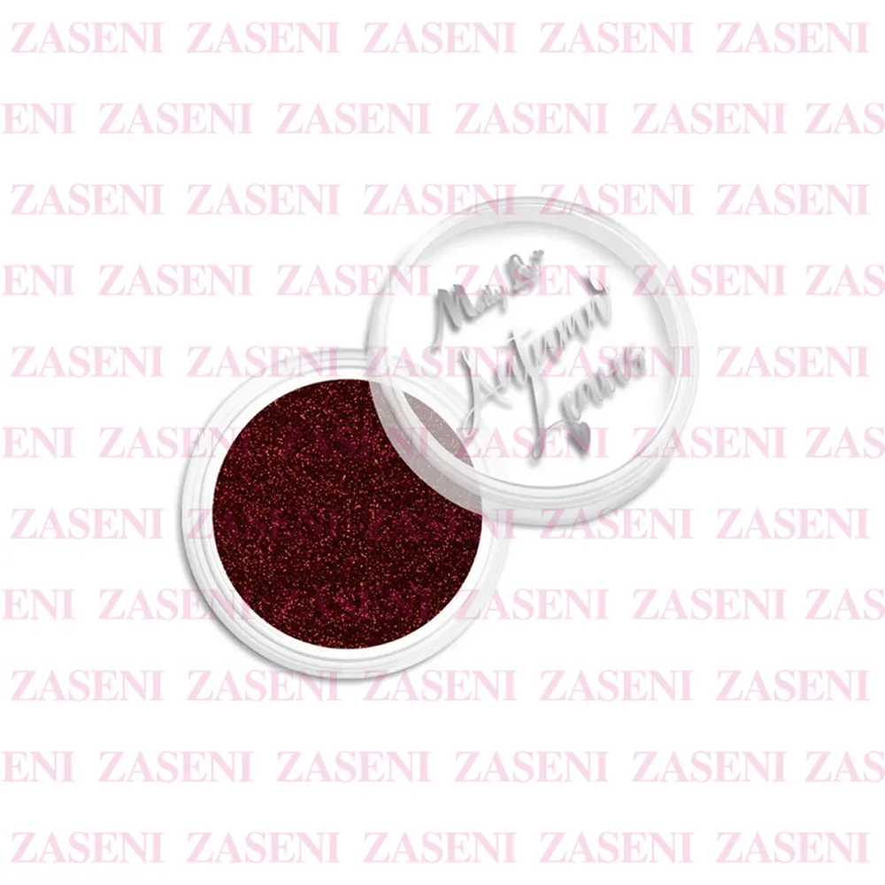 Efecto polvo de grano fino con partículas de color rojo otoñal que permite crear diversos diseños y desatar la creatividad.