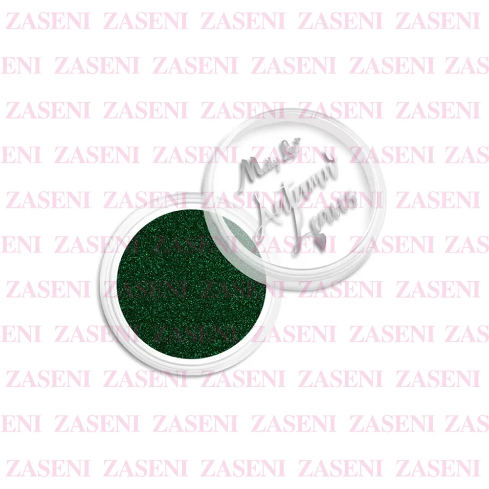 Efecto polvo de grano fino con partículas de color verde otoñal que permite crear diversos diseños y desatar la creatividad.