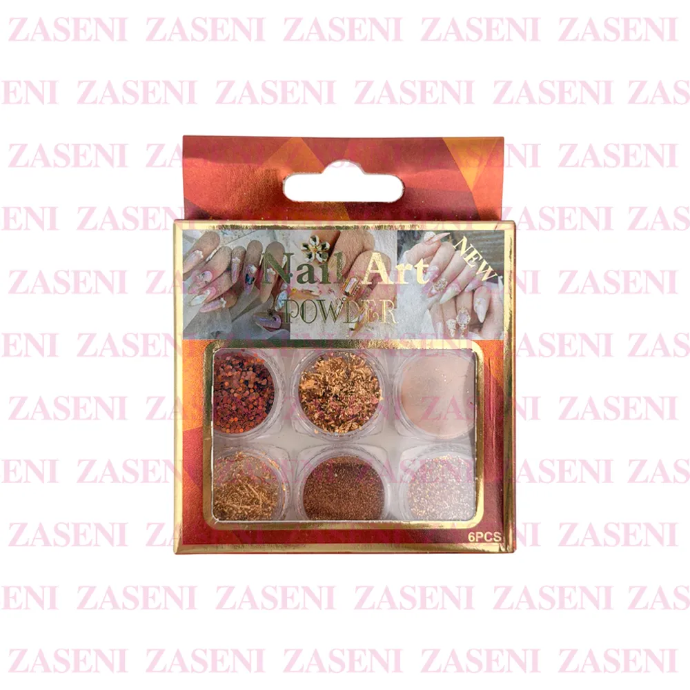 Set de decoraciones para uñas con 6 frascos de distintos estilos ideales para crear diseños únicos y personalizados consiguiendo una manicura única y llamativa.