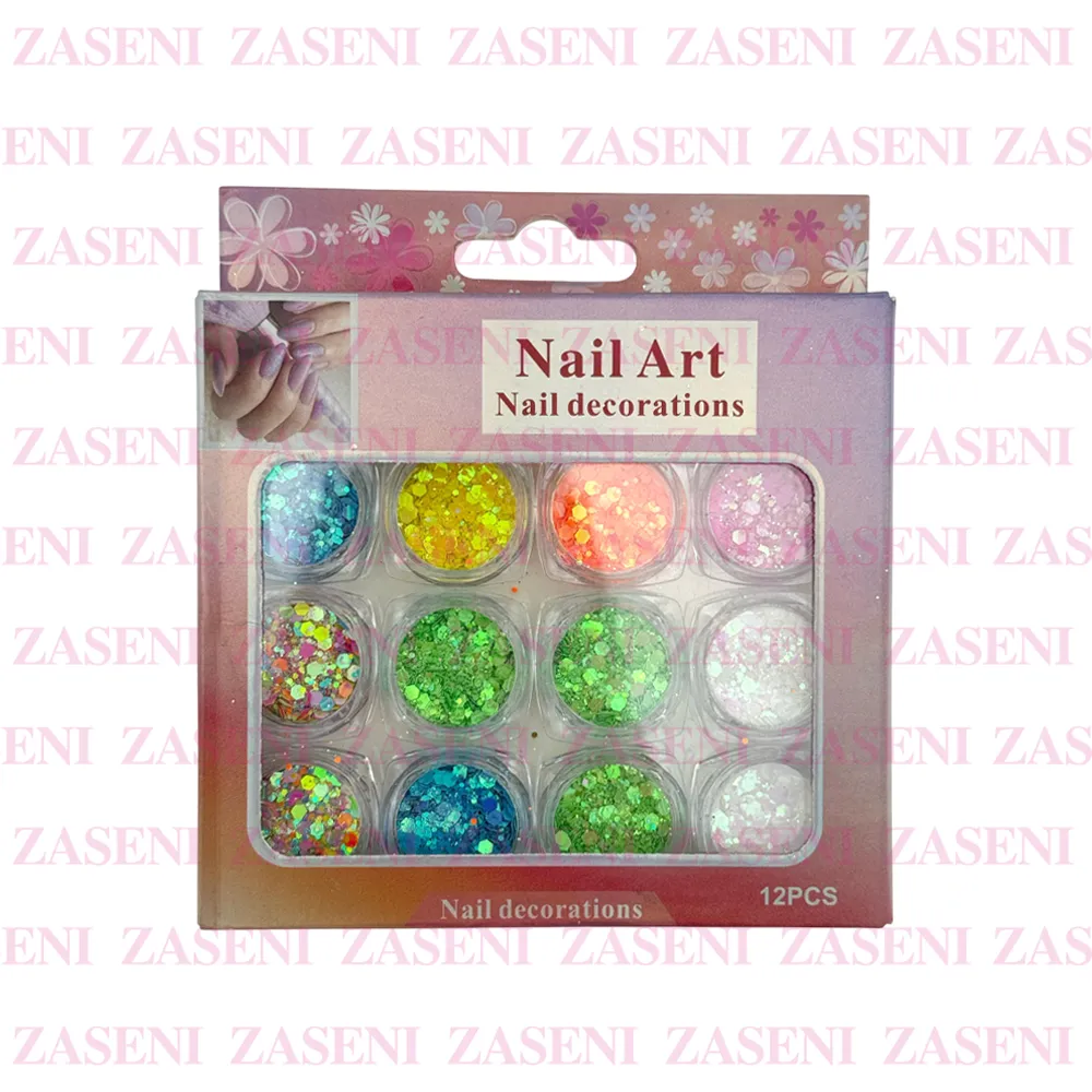 PACK DECORACIÓN UÑAS ESCAMAS COLORES VARIADOS 12UDS