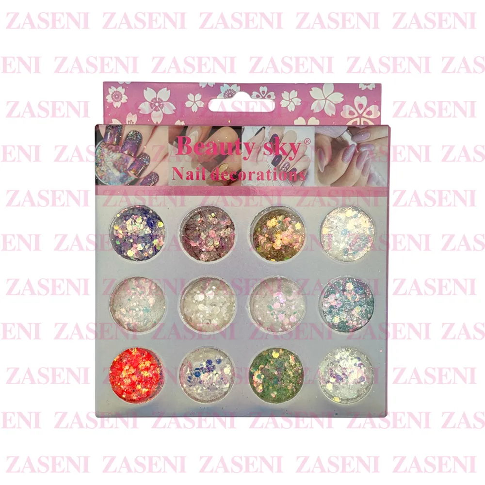 PACK DECORACIÓN UÑAS ESCAMAS COLORES VARIADOS 12UDS