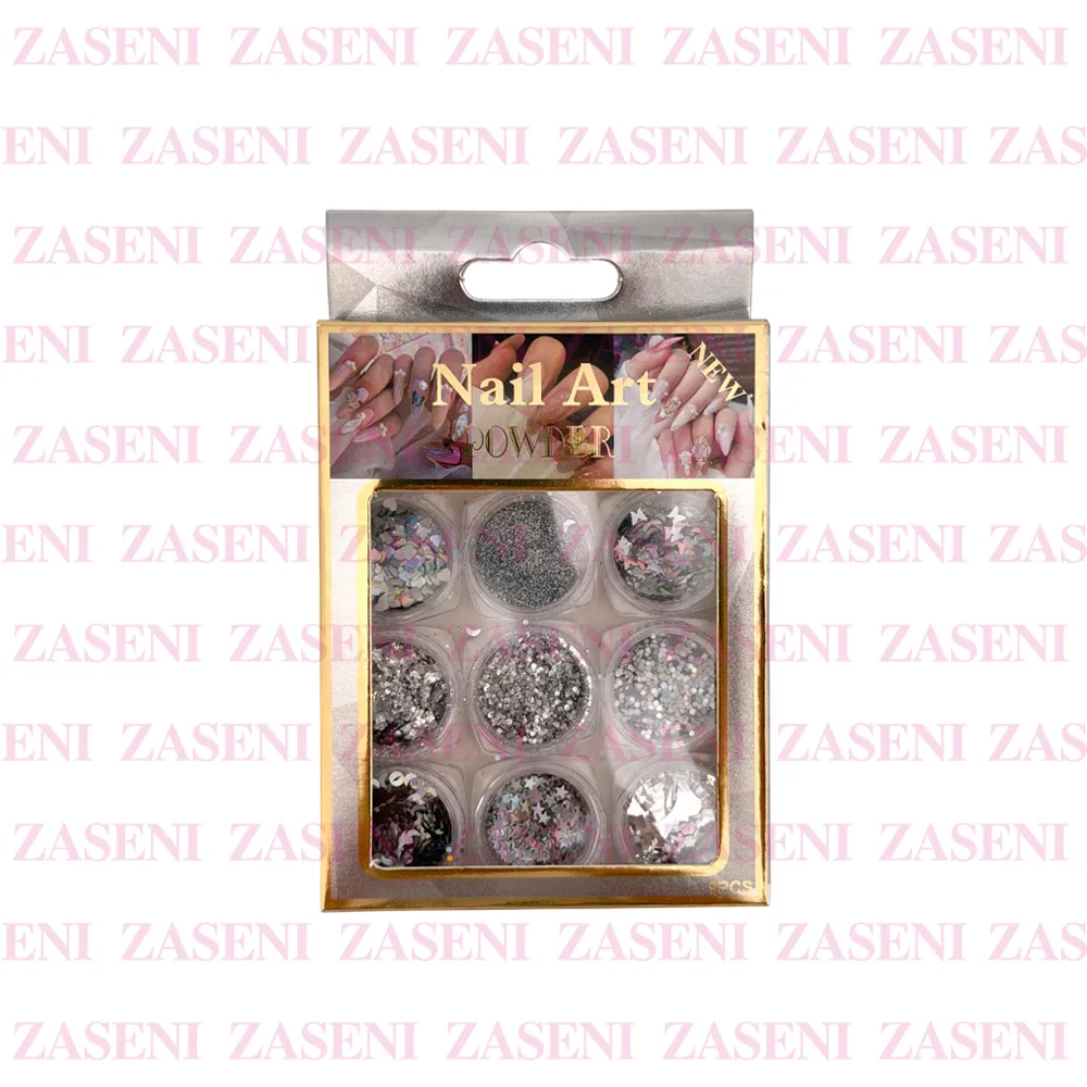 Set de decoraciones para uñas con 9 frascos de distintos estilos ideales para crear diseños únicos y personalizados consiguiendo una manicura única y llamativa.