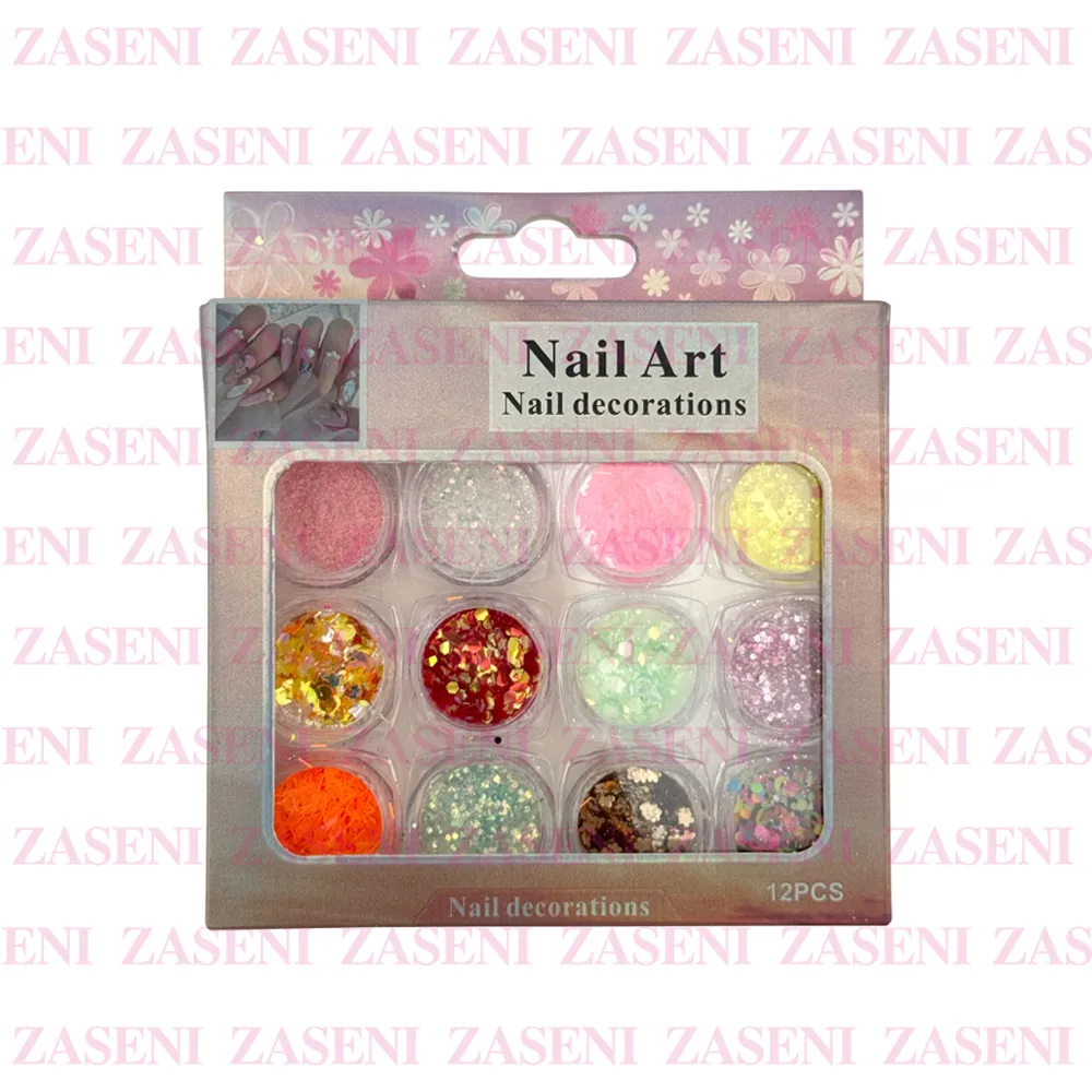 PACK DECORACIÓN UÑAS ESCAMAS COLORES VARIADOS 12UDS