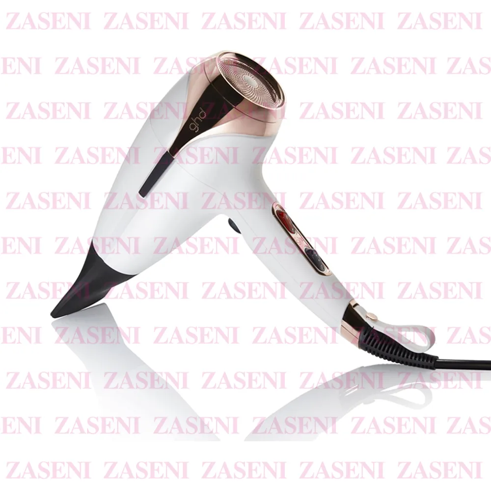 - Rápido y potente: los 2200W de su motor sin escobillas, su calentador de forma ondulada y su exclusiva boquilla contorneada específica de GHD, crean una gran concentración de aire que se desplaza a 120km/h acelerando tu rutina de peinado.