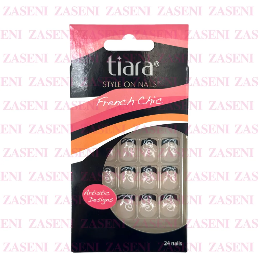 TIARA UÑAS POSTIZAS FRENCH CHIC FRANCESA NEGRA DIBUJADA