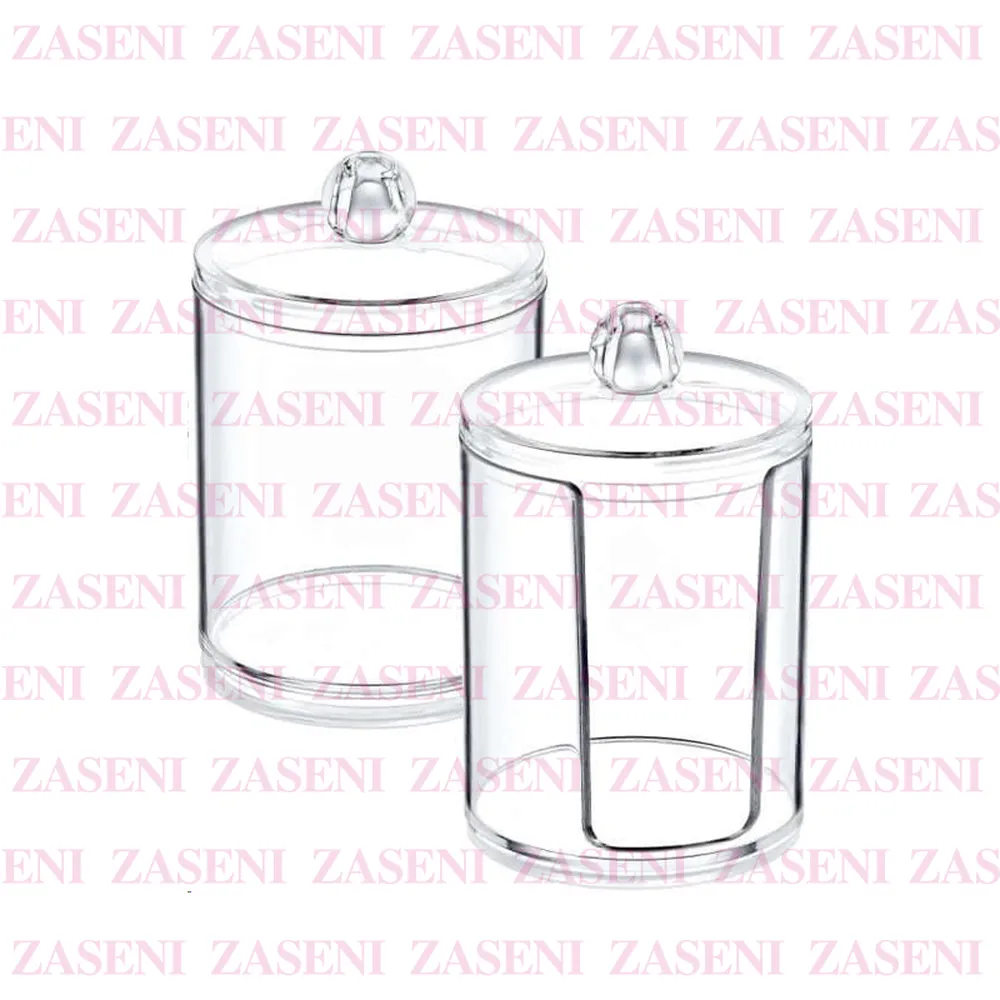 Organizadores cilíndricos transparentes diseñados para guardar y organizar discos de algodón, bastoncillos y todo lo que se desee, pudiéndose utilizar de forma individual o apilados.