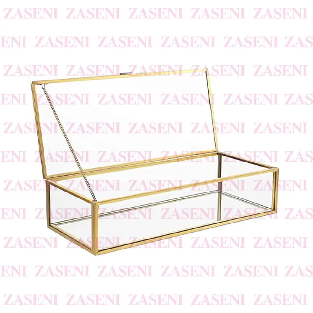 Organizador de cristal con bordes dorados elegante y funcional diseñado para organizar maquillaje u otros utensilios consiguiendo un espacio organizado y práctico.
