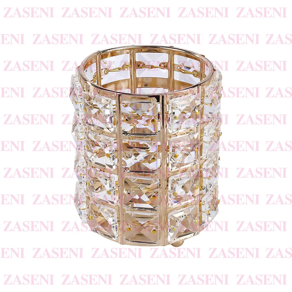 Portapinceles con un espectacular diseño dorado con grandes diamantes especialmente diseñado para organizar los pinceles y tenerlos a mano a la hora del maquillado.
