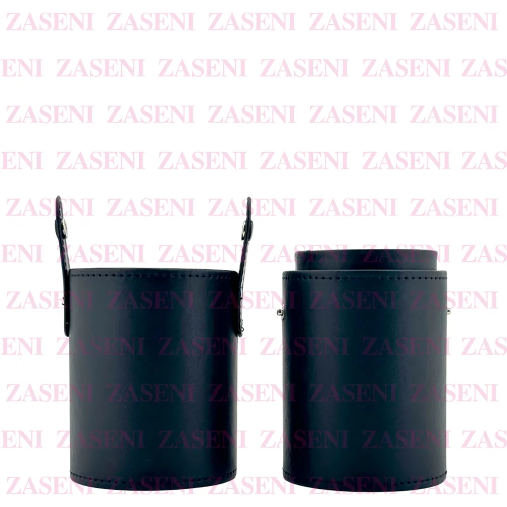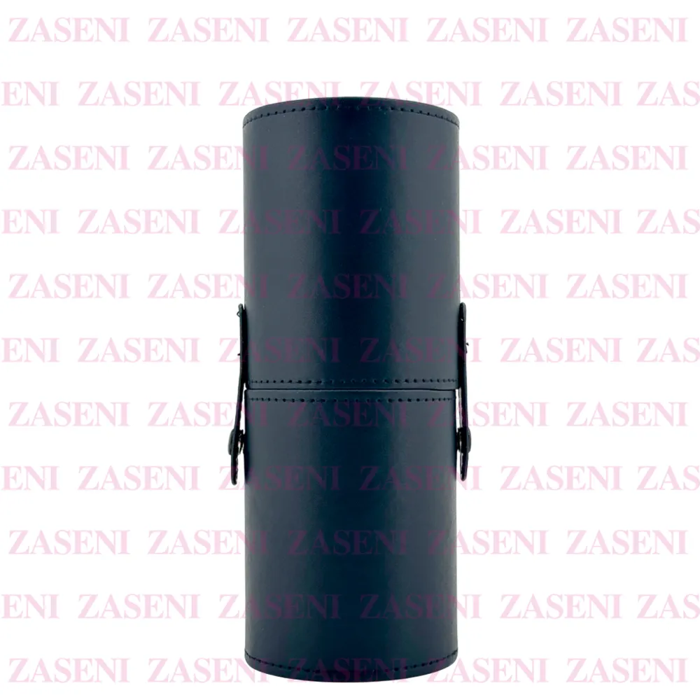 Estuche de acabado acolchado y diseño elegante de color negro diseñado para organizar y proteger las brochas de maquillaje manteniéndolas seguras y protegidas.