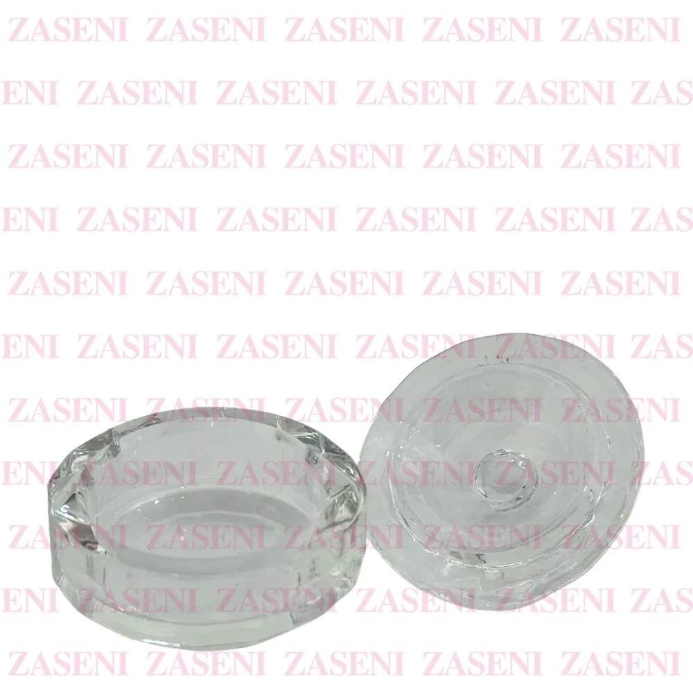 Vaso de cristal transparente con tapa grueso y resistente diseñado para facilitar el uso del monómero durante la realización de uñas acrílicas, consiguiendo un trabajo práctico y funcional.