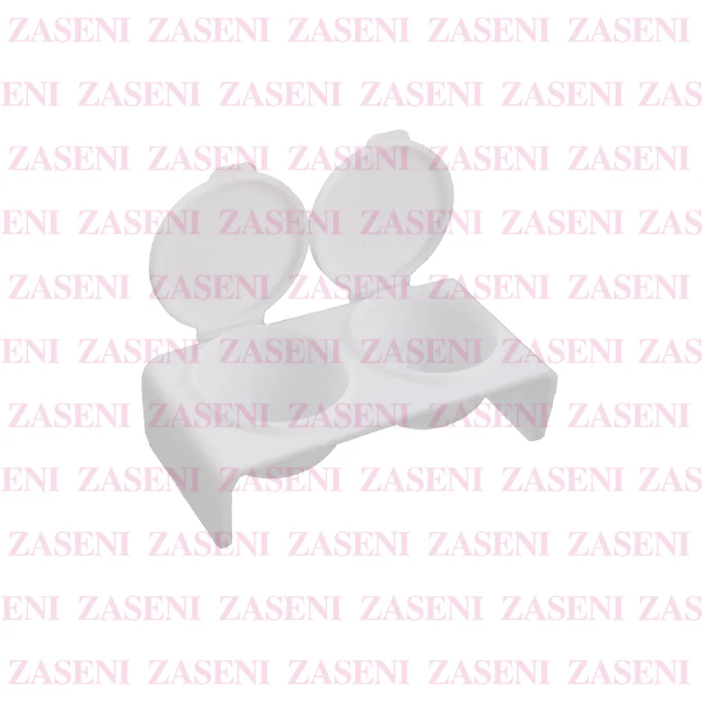 Vaso doble de plástico resistente y duradero, con dos compartimentos individuales con tapa, diseñado para mantener separado el monómero y el acrílico evitando derrames y facilitando su uso proporcionando un trabajo eficiente y óptimo.