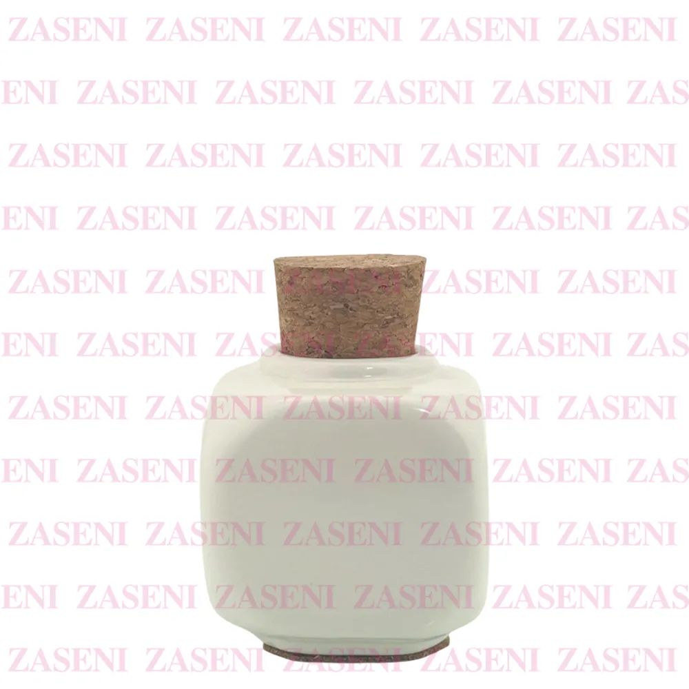 Vaso de porcelana con tapón de corcho diseñado para facilitar el uso del monómero durante la realización de uñas acrílicas, consiguiendo un trabajo práctico y funcional.