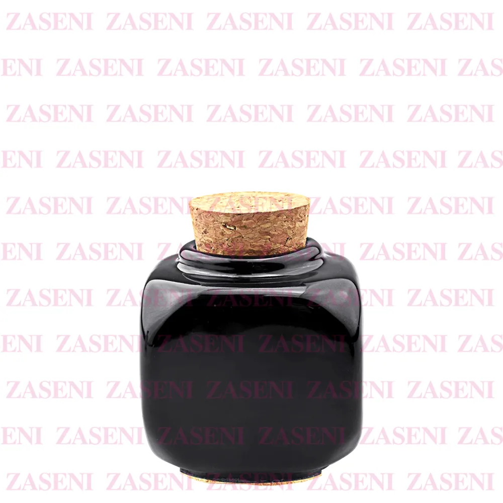 Vaso de porcelana con tapón de corcho diseñado para facilitar el uso del monómero durante la realización de uñas acrílicas, consiguiendo un trabajo práctico y funcional.
